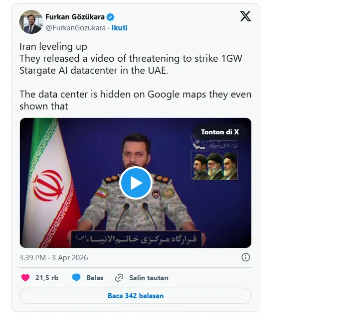 Pusat data di Abu Dhabi tersebut merupakan salah satu pilar penting bagi operasional OpenAI di kawasan tersebut, yang dibangun sebagai hasil kerja sama strategis untuk memperluas jangkauan teknologi AI. Namun, Iran menilai fasilitas tersebut memiliki peran yang lebih dari sekadar penyedia layanan komputasi dan secara tegas memasukkannya ke dalam daftar target potensial dalam skenario eskalasi militer lebih lanjut.