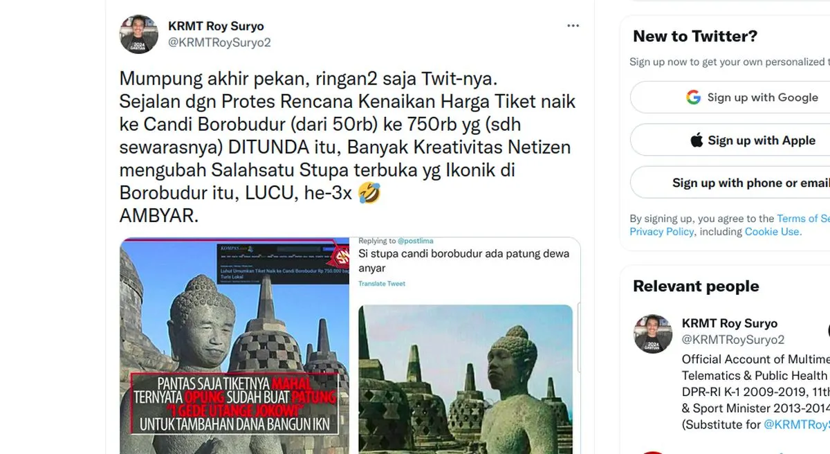 Baca juga: Trending di Twitter, Harga Tiket Masuk Borobudur Kini Rp750 Ribu