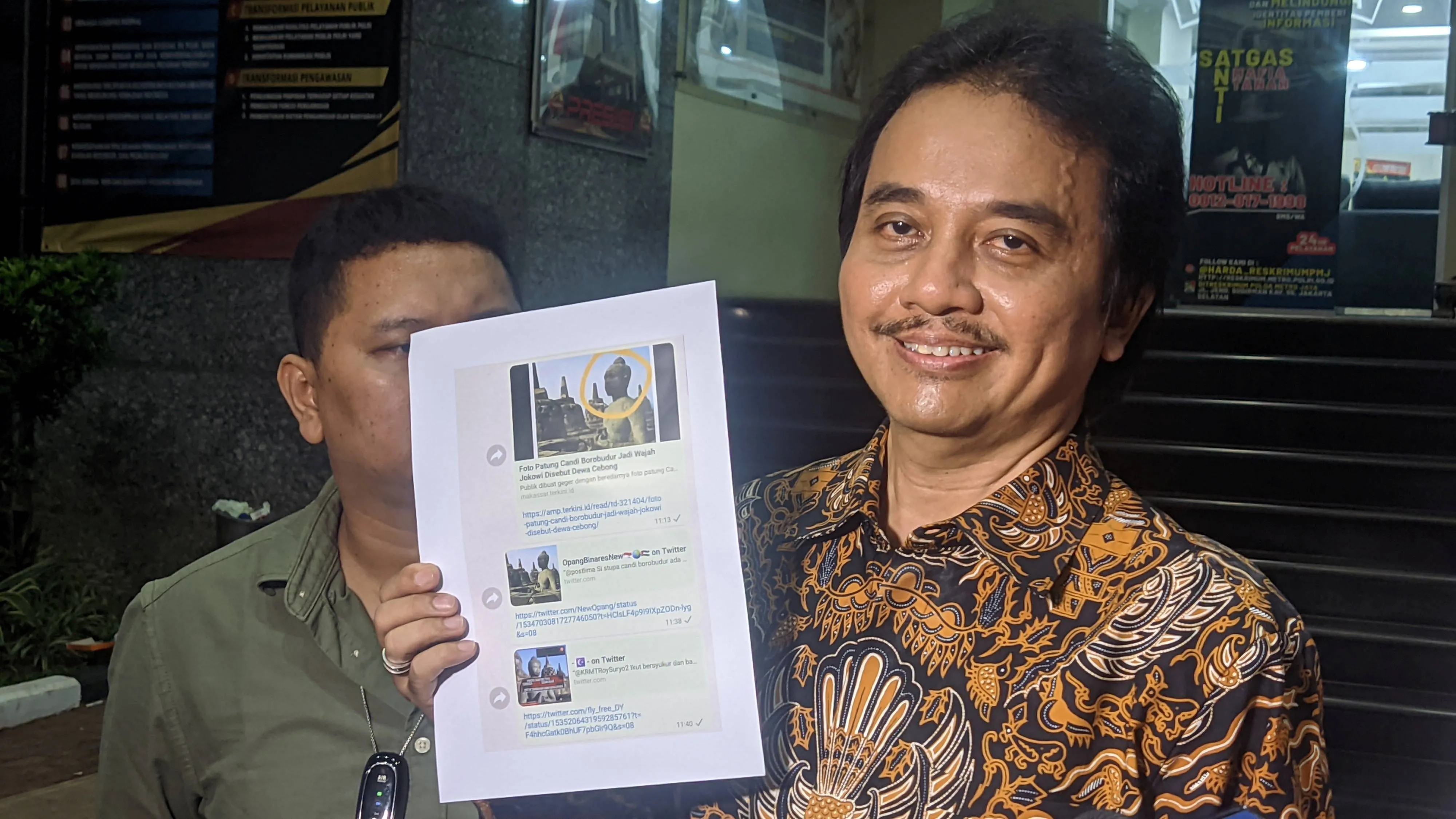 Sementara itu, Roy Suryo pun tidak tinggal diam. Melalui kuasa hukumnya, Pitra Romadoni, Roy Suryo juga melaporkan pengunggah pertama foto meme stupa Candi Borobudur tersebut ke Polda Metro Jaya pada Kamis (16/6) malam.