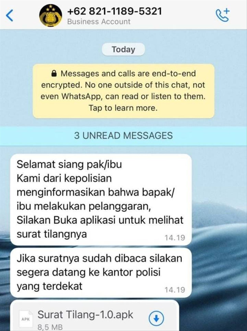 Teknologi.id - Para penjahat siber semakin mengintensifkan modus penipuan dan pengelabuan melalui aplikasi WhatsApp. Kali ini, mereka menggunakan trik mengirim surat tilang melalui WhatsApp kepada calon korban dengan mengatasnamakan Kepolisian Negara Republik Indonesia (Polri).