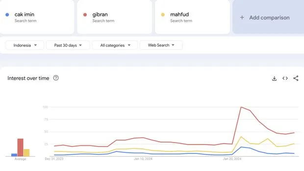 Trends hingga 31 Januari, Gibran Rakabuming menguasai mayoritas pencarian di