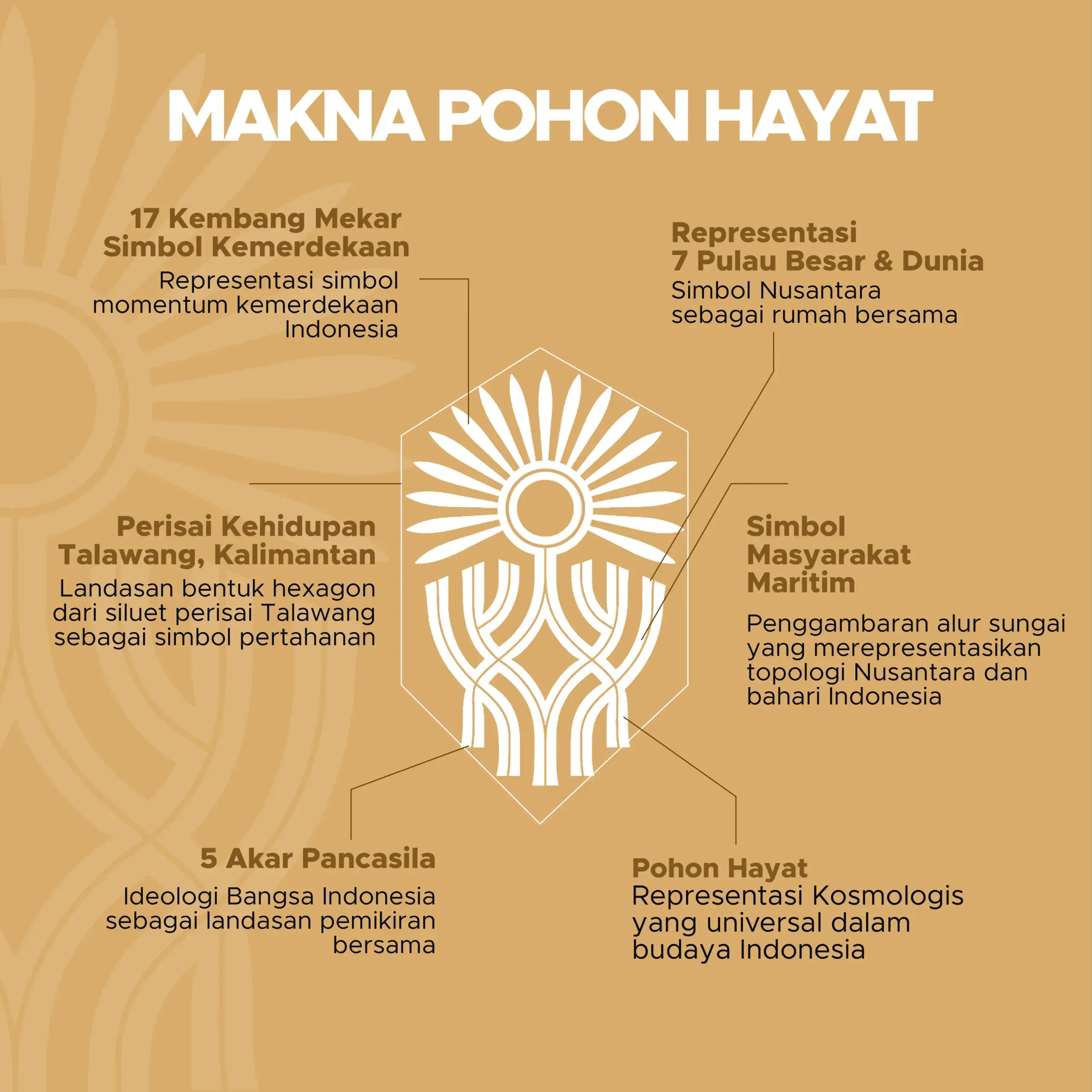 Presiden Jokowi juga menyatakan bahwa filosofi dari logo "Pohon Hayat" ini sejalan dengan pembangunan IKN dan semangat untuk menumbuhkan rasa bangga sebagai bangsa Indonesia. Logo tersebut juga menggugah kesadaran masyarakat untuk menjaga alam dan lingkungan beserta ekosistemnya.
