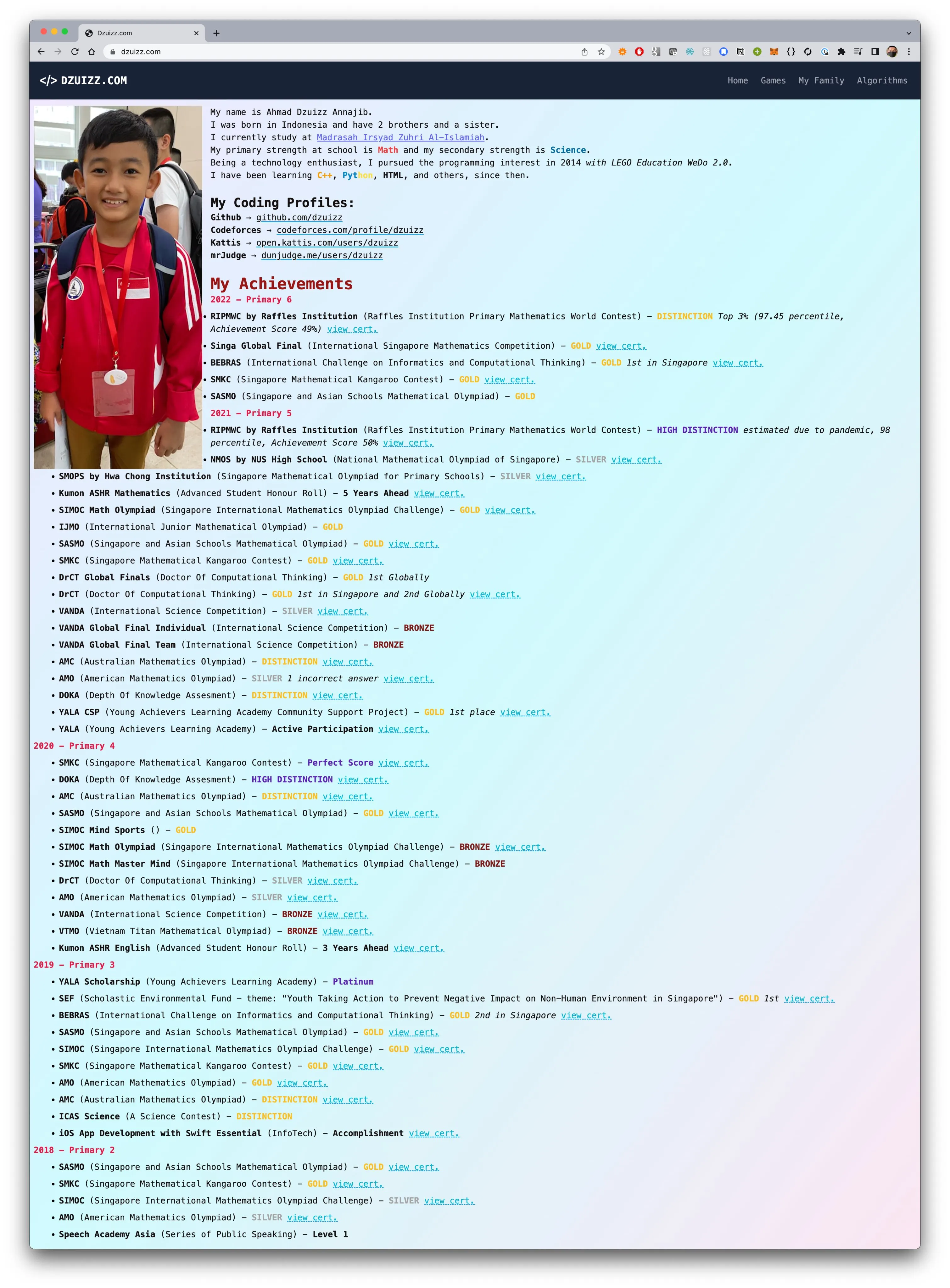 Dzuizz yang berusia 12 tahun ini ramai diperbincangkan di media sosial setelah ayahnya mengunggah website yang dibuat sendiri oleh Dzuizz, Dzuizz.com. Di website itu, Dzuizz menulis biodata diri beserta 50 penghargaan yang pernah ia dapatkan.