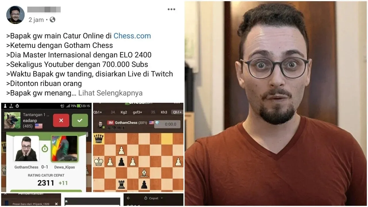 Kejadian tersebut diketahui dari unggahan pengguna Facebook bernama Ali Akbar. Ali merupakan anak dari pemilik akun Dewa_Kipas alias Dadang Subur yang mengalahkan GothamChess.