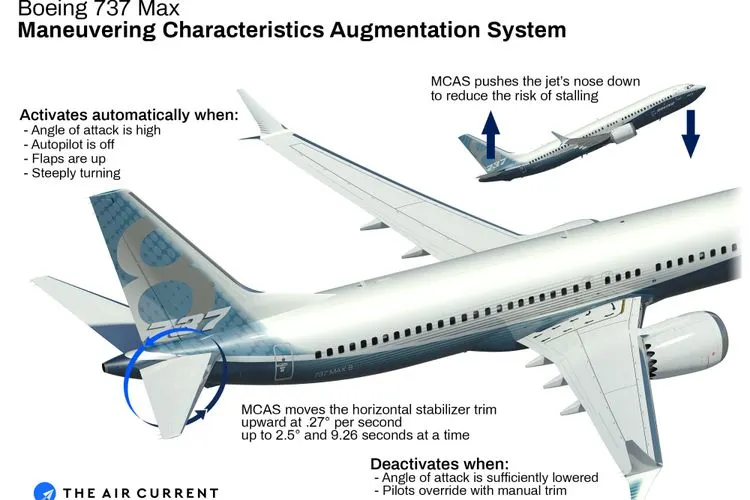 Diagram sistem otomatis di 737 MAX untuk menurunkan hidung pesawat. Foto: The Air Current Para ahli dan pakar dunia penerbangan menduga kalau teknologi baru model MAX 8 bernama