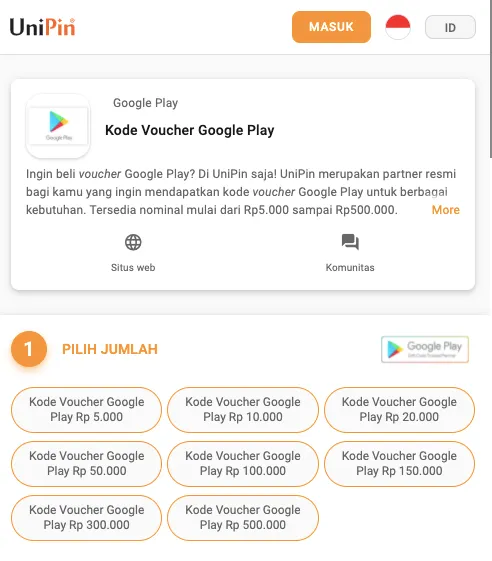 - Kamu bisa beli voucher Google Play di berbagai tempat. Salah satunya di UniPin.