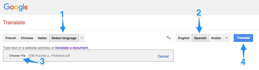 Cara yang satu ini pastinya sudah familiar bagi kalian, yaitu dengan menggunakan Google Translate. Fitur canggih yang dikembangkan oleh Google ini selalu menyajikan terjemahan yang cukup bisa dipercaya. Tidak hanya menerjemahkan kata demi kata saja, melainkan Google Translate juga dapat menerjemahkan dalam bentuk file atau dokumen. Berikut cara-caranya: