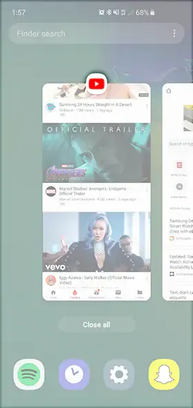 - Klik tombol Recent Apps sampai semua aplikasi YouTube di latar belakang muncul
