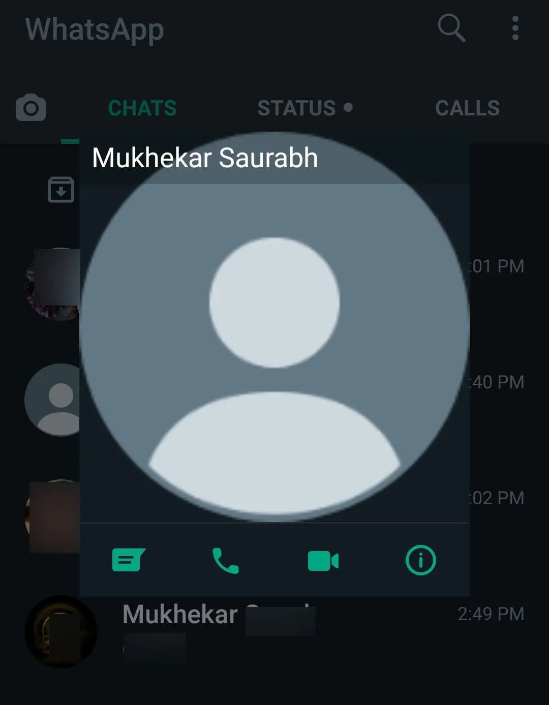 - Perhatikan foto profilnya. Jika foto profil tidak muncul atau hanya terlihat ikon abu-abu, kemungkinan nomor Anda tidak disimpan olehnya.
