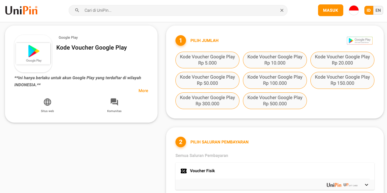 Voucher Google Play dapat jadi solusi pembayaran di Play Store, khususnya bagi kamu yang tidak punya kartu kredit/debit ataupun rekening bank. Sebab voucher Google Play bisa didapat dengan mudah. Seperti misalkan bisa dibeli di Indomaret, Alfamart, atau dibeli secara online di UniPin.com.