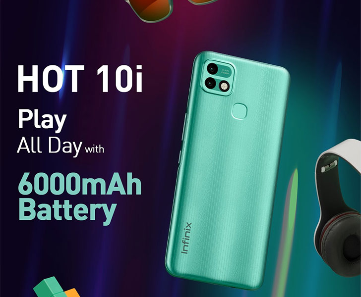 (primer) dan sensor QVGA tambahan. Infinix Hot 10i mempunyai baterai jumbo 6.000 mAh dengan fitur fast charging 18 W.