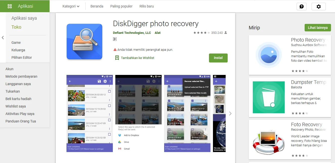 Sederet aplikasi ini cukup populer digunakan oleh pengguna dan bisa didapatkan di toko aplikasi Play Store. Berikut 3 aplikasi yang bisa digunakan untuk mengembalikan data yang sudah terhapus di ponsel Android milikmu, yang dihimpun Teknologi.id: