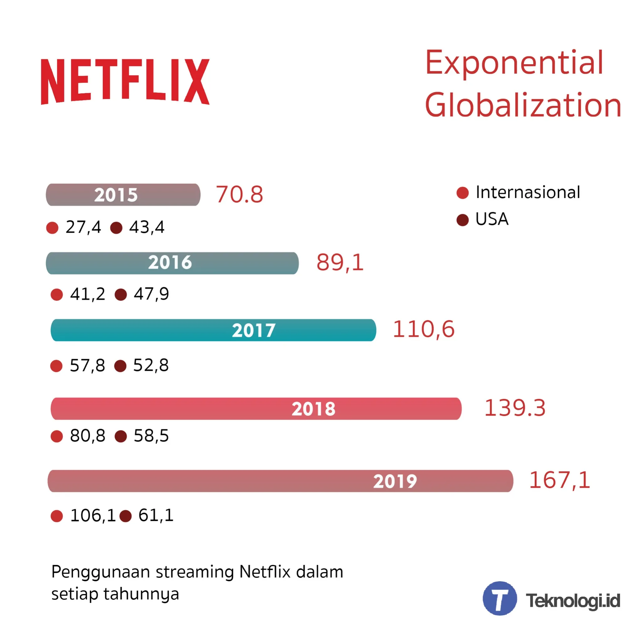 Teknologi.id - Siapa yang tidak tau Netflix? sebuah perusahaan asal Amerika yang menyediakan layanan streaming Film dan Acara TV Show favorit dan saat ini menjadi salah satu penyedia layanan streaming digital paling besar di dunia. Netflix terus bergerak cepat untuk menghadirkan konten-konten orisinal yang bervariatif dalam layanannya. Pada tahun 2015, Netflix sudah beroperasi di lebih dari 190 negara, dan dari 73 juta diantaranya merupakan pengguna di luar AS. dan saat 2018, untuk pertama kalinya, pendapatan netflix secara internasional melebihi pendapatan streaming domestik. Hal Ini adalah pencapaian luar biasa untuk perusahaan yang sebelumnya hanya berkembang di negara Amerika. Tidak mencoba memasuki semua pasar sekaligus. Sebaliknya, Netflix dengan hati-hati memilih target pasar awal yang kemungkinan besar terjadi perbedaan antar pasar. Misalnya, melakukan awal ekspansi internasional ke Kanada, yang secara geografis dekat dan memiliki banyak kesamaan dengan Amerika Serikat. Dengan demikian, Netflix akan mempunyai pengalaman untuk mengembangkan marketnya di negara yang nantinya akan memiliki tantangan "keasingan" oleh penggunannya. Product Improvement Menyadari bahwa di beberapa bagian dunia, khususnya negara berkembang, Netflix juga mulai memberikan penyesuaian fitur - fitur yang lebih mudah untuk digunakan termasuk Pembuatan Akun, Autentikasi, hingga efisiensi streaming untuk penggunaan seluler. Seperti untuk target mereka, semua pengguna bisa menghabiskan waktu menonton satu season serial tanpa harus menunggu karna perbedaan negara. dan Semua bisa dinikmati dengan biaya berlangganan bulanan tanpa juga harus mengikuti jadwal tayang ataupun membeli perangkat. Netflix juga berfokus dalam meningkatkan opsi bahasa lokal untuk antarmuka, subtitle, dan sulih suara. Selain itu, Netflix bekerja dengan menanggapi pasar baru yang dimasukinya. Misalnya, ketika Vodafone meluncurkan layanan TV untuk pelanggannya di Irlandia, itu menyertakan bagian tombol Netflix khusus pada remote control-nya untuk memudahkan pengguna saat membuka platformnya. Selain itu, penggunaan basis teknologi seperti film series Black Mirror, dimana series ini menceritakan mengenai Internet of things dan juga salah satu bagian series ini bisa di pilih alur ceritanya sendiri oleh penonton. Source: Netflix Exponential Globalization Secara keseluruhan, strategi ekspansi Netflix merupakan pendekatan baru yang bisa disebut Exponential Globalization. Ekspansi ini diatur dengan hati-hati, dijalankan dengan kecepatan tinggi, ke banyak negara dan pelanggan. Selain itu, ada tiga fase yang dilakukan Netflix untuk Ekspansi globalnya yaitu: Fase pertama, memproses globalisasinya dengan model ekspansi tradisional. Bekerjasama dengan dengan pembuat perangkat, operator seluler dan TV, dan juga penyedia layanan internet lokal. Berkerjasama dengan Beberapa pihak seperti pemerintahan dan pihak yang terlibat dengan Industri terkait di negara tersebut. Adaptasi lokal, pendekatan kepada pengguna dengan menyesuaikan budaya negara terkait. Fase kedua, ekspansi internasional yang lebih cepat dan luas. Bermitra dengan pemangku pasar internasional Banyak berinvestasi konten dengan preferensi geografi, hingga berinvestasi komponen perangkat untuk penggunaan teknologi terkini. Fase ketiga, penyebaran market dan menyesuaikan layanan. mendapatkan experience dalam konten disukai orang, market yang mereka tanggapi, dan bagaimana perusahaan perlu mengatur pertumbuhan dirinya sendiri. Menyamaratakan tarif layanan streaming di beberapa negara dengan tujuan memerangi penawaran yang lebih murah dari pesaing mereka. Seperti yang ditunjukkan grafik berikut, pertumbuhan pelanggan Netflix selama lima tahun terakhir sebagian besar didorong oleh ekspansi globalnya. Sejak akhir 2015, Netflix memperoleh 96,3 juta pelanggan berbayar, 78,6 di antaranya berasal dari luar Amerika Serikat. Source: Teknologi.id Perpaduan antara konten Global dan Regional Netflix menghabiskan sekitar $400 juta untuk mengembangkan konten Original serta melisensikan konten lain untuk pasar antara 2019 dan 2020. Pendekatan ini telah membantu Netflix untuk berkembang jauh lebih cepat daripada pesaing. Kedepannya, Netflix akan menghadapi persaingan yang semakin ketat tidak hanya dari pemain global lainnya seperti Amazon Prime tetapi juga dari pendatang baru dan berbagai perusahaan streaming lokal lainnya. Dalam hal itu, ia harus terus memperluas perpaduan konten global dan regionalnya, seperti contoh membuat serial khusus atau mini-series dari film tersebut. Dengan penyebaran pasar tradisional, pertumbuhan internet secara umum, dan juga penyesuaian penggunannya. Netflix telah menunjukkan bahwa strategi ini sekarang menjadi pilihan yang sangat tepat. akan Tetapi hal itu membutuhkan penguasaan konteks secara lokal, termasuk kemampuan untuk memperoleh pengetahuan lokal dan untuk menunjukkan kepekaan dan daya tanggap. Dengan meningkatnya prevalensi “Winners-Takes-All’, perusahaan lain yang beroperasi di pasar tersebut perlu mengejar strategi internasionalisasi yang serupa dengan Netflix. Dan mengenai tahap pertumbuhan Netflix berikutnya, dan bagaimana ia akan menanggapi penantang baru. Gabungan dari beberapa sumber referensi: How Netflix Expanded to 190 Countries in 7 Years dari Louis Brennan - Harvard Business Review Netflix bets big on Asia as it sees ‘significant potential’ in these markets dari CNBC What Three Global Giants Teach Us About International Expansion dari Velocityglobal Netflix's International Expansion dari Statista