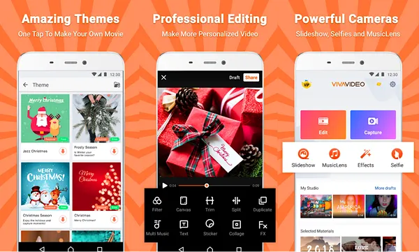 Aplikasi edit video tanpa watermark terakhir yang wajib kamu install adalah VivaVideo. Aplikasi ini memiliki banyak fitur mengagumkan yang bisa memudahkanmu dalam membuat video. Pengembang juga memastikan agar kamu bisa membuat video layaknya profesional hanya menggunakan HP Android.