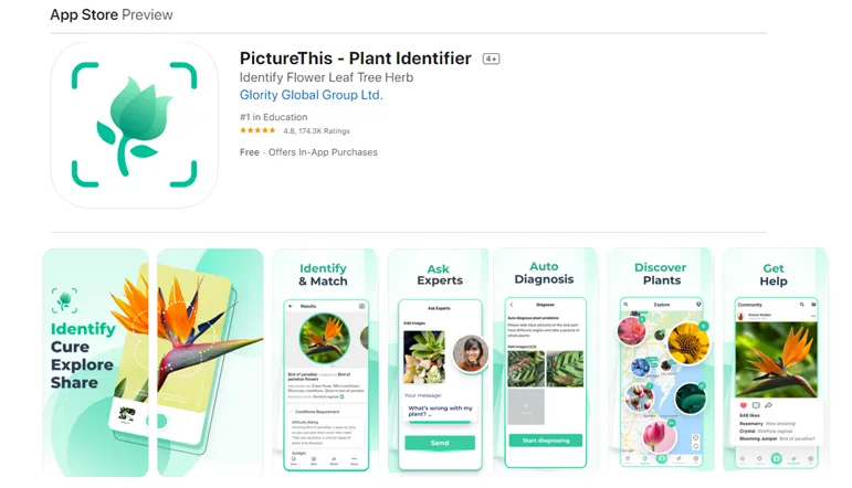 Seperti banyak aplikasi lainnya, Picture This dilengkapi dengan pengidentifikasi tanaman yang diaktifkan kamera dan panduan perawatan yang terperinci. Tetapi begitu kalian mengupgrade ke premium, aplikasi ini juga memungkinkan untuk mengakses fitur yang tidak ditawarkan aplikasi lain, seperti AI untuk mendiagnosis tanaman yang sakit, serta forum komunitas untuk pemecahan masalah dan berbagi tips dan trik perawatan tanaman.