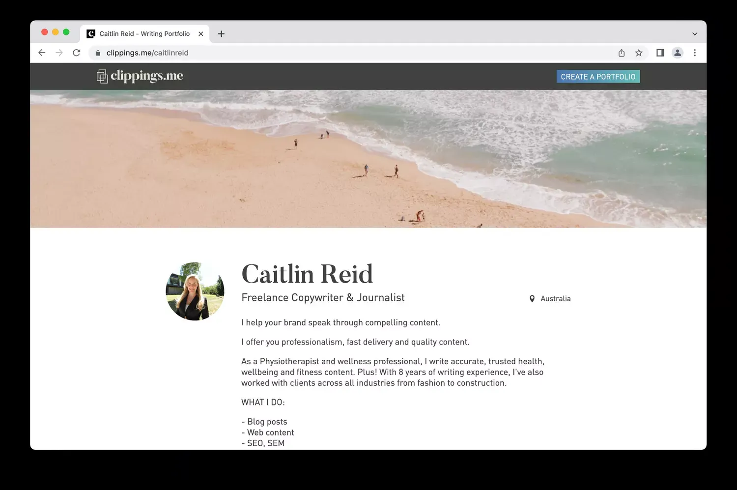 Clippings.me kebanyakan digunakan sebagai portofolio tulisan seperti, berita, teks cerita dan artikel. Ini cocok buat kamu seorang writer yang ingin melamar pekerjaan dibidang yang terkait dengan writer seperti, content writer, blog writer, SEO dan copywriter. Pada Clippings.me kamu bisa menulis bio singkat dengan dirimu, memilih tampilan design pada profil clippingsmu, memilih portofolio yang ingin kamu upload. Jumlah portofolio yang diupload tidak dibatasi, Sehingga kamu bisa upload portofoliomu sebanyak mungkin. Bahkan, terdapat grafik jumlah pengunjung yang melihat portofoliomu. Pastinya, link pada akun clippings.me bisa sebagai link untuk portofoliomu tanpa harus membuat PPT.