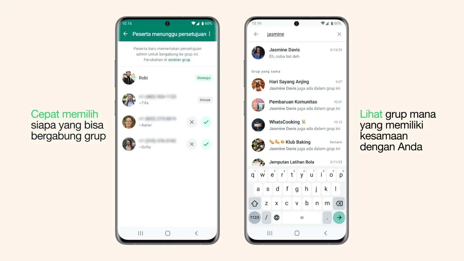 Untuk mengakomodasi jumlah anggota komunitas yang semakin bertambah, WhatsApp memberikan kontrol lebih pada admin grup terkait privasi grup mereka. Admin kini bisa memutuskan siapa yang bisa masuk ke grup dengan cara yang cukup sederhana.