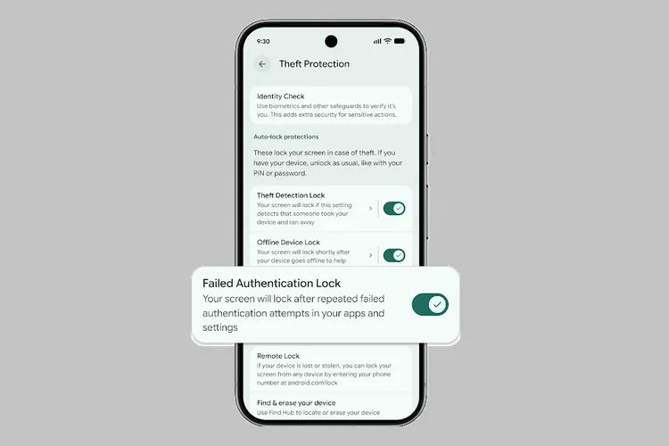 Failed Authentication Lock pertama kali diperkenalkan melalui Android 15. Fitur ini berfungsi mengunci perangkat secara otomatis ketika sistem mendeteksi percobaan membuka kunci yang gagal berkali-kali, baik menggunakan PIN, pola, maupun kata sandi.