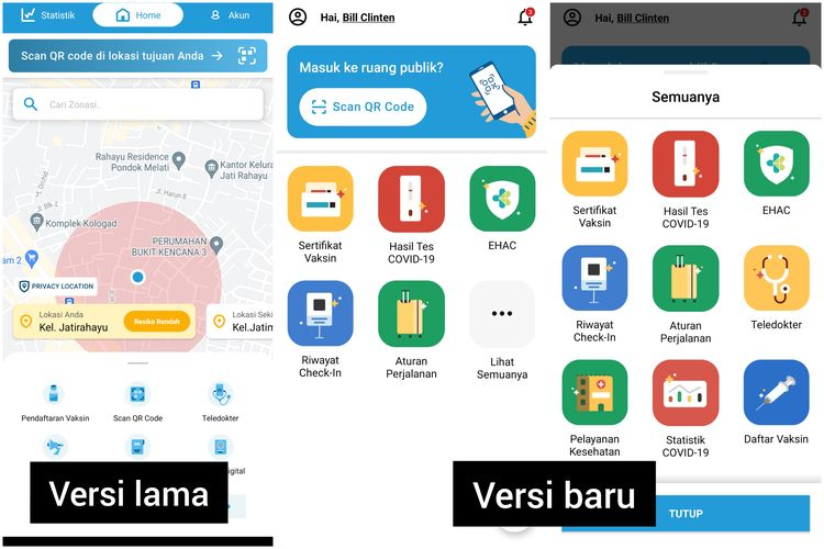 Selain itu, tampilan utama aplikasi PeduliLindungi juga kini terlihat lebih