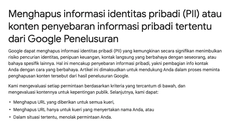 Jika permintaan dikabulkan, maka URL yang spesifik mengandung informasi pengguna tadi akan hilang dari hasil pencarian Google.