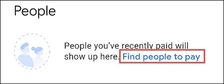 2. Di bagian atas tab "Pay" ada bagian "People", tap "Find people to pay"