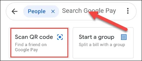 • Mengetuk "Scan QR Code" untuk memindai kode Google Pay pribadi orang yang dituju