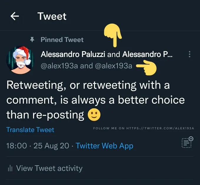 Seperti yang terlihat di atas, kedua pegangan akan terlihat untuk tweet kolaborasi itu.