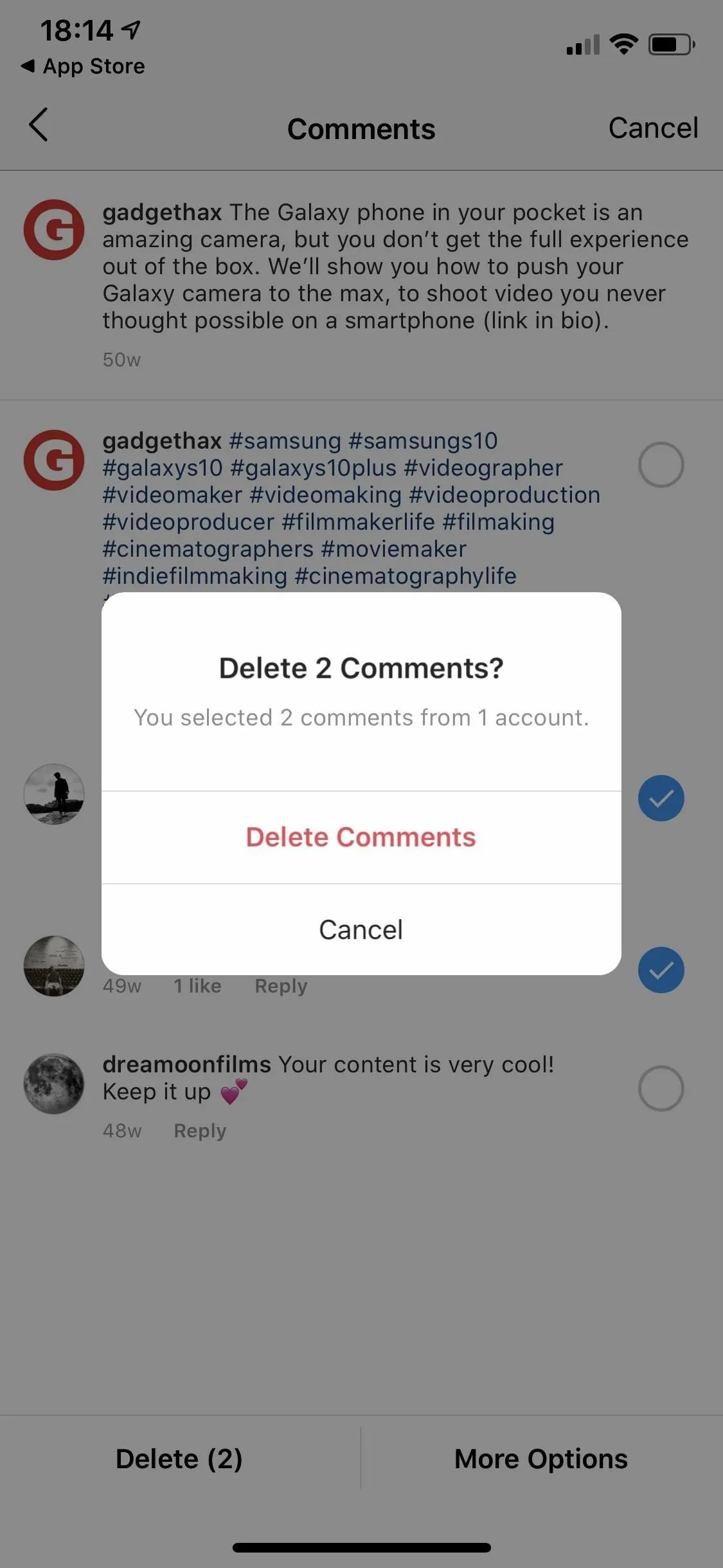 • Beberapa komentar yang telah dipilih akan otomatis terhapus dari kolom komentar di akun pengguna.