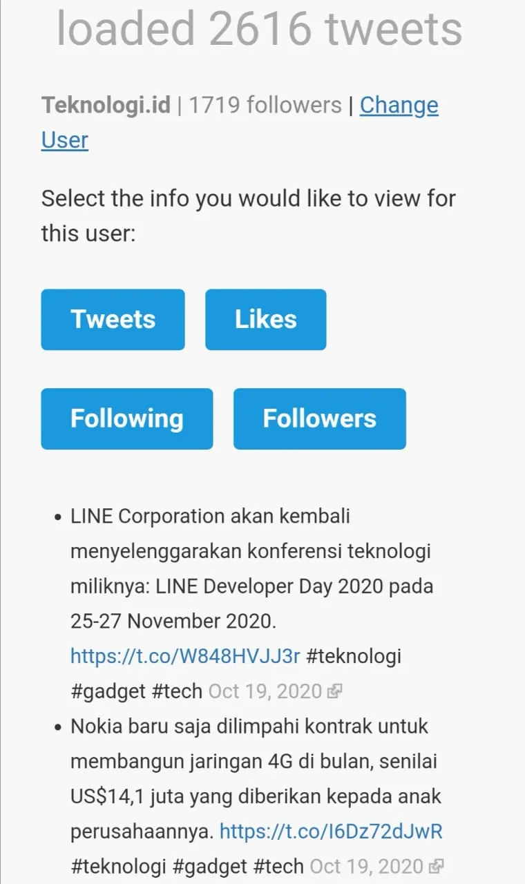 5. Setelah keseluruhan tweets ditampilkan gunakan Ctrl + F untuk memudahkan pencarian