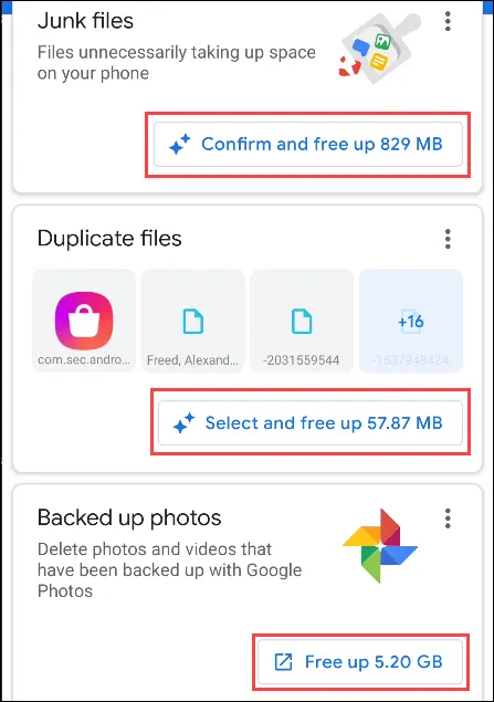 - Confirm and Free Up: langsung menghapus file tanpa memilihnya satu per satu