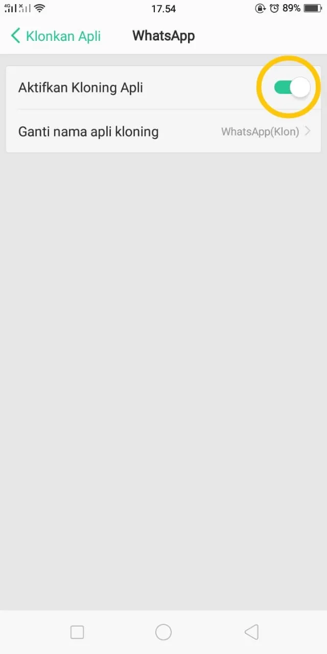 Langkah terakhir yang perlu dilakukan adalah dengan mengaktifkan Klon Aplikasi tersebut, dengan cara menggeser pointer atau yang lainnya (sesuai masing-masing brand).