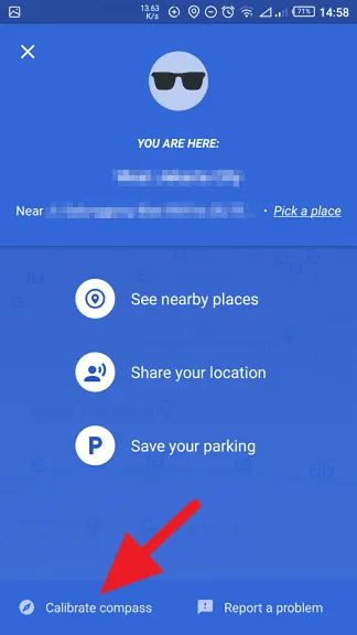 - Tap tombol Calibrate compass yang berada di bagian pojok kiri bawah layar.
