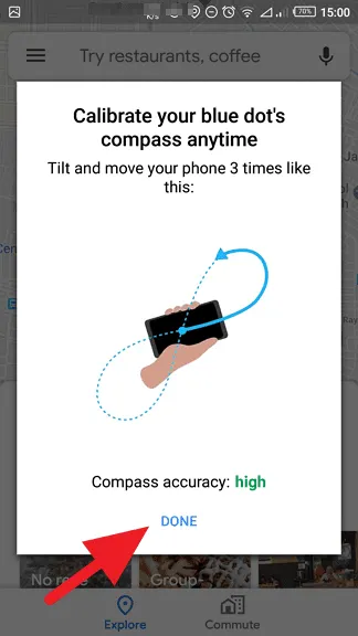 - Apabila akurasi kompas sudah meningkat, tap Done.