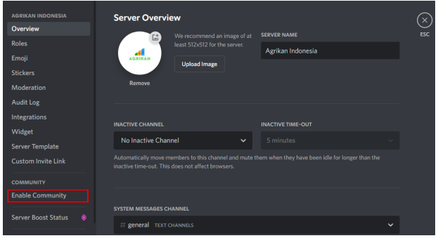 Selanjutnya kamu akan masuk ke dalam halaman pengaturan, di halaman pengaturan kamu pilih menu ‘Community’ lalu pilih sub-menu ‘Enable Community’.