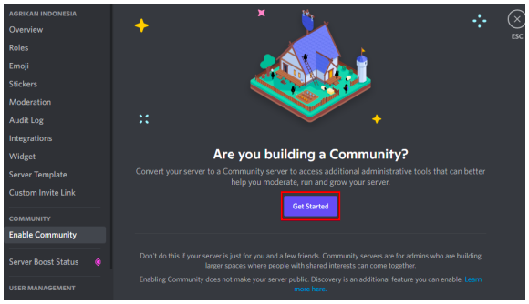 Pilih ‘Get Started’ untuk mengisi administrasi pendaftaran server menjadi komunitas.