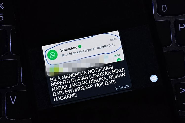 Sebuah tangkapan layar chat WhatsApp bercentang hijau di lingkari telah menjadi perbincangan. Pesan ini datang dari akun "WhatsApp" dan dihimbau bahwa jika mendapatkan notifikasi serupa, jangan dibuka karena dipercayai berasal dari hacker. Namun, apakah benar akun "WhatsApp" bercentang hijau ini milik hacker?