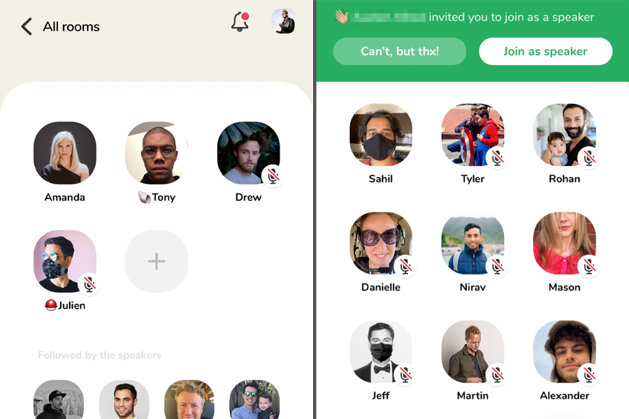 Tampilan ruang obrolan di aplikasi Clubhouse bisa dibilang simpel dan sederhana. Hanya ada foto profil dan nama pengguna di bawah foto tersebut.