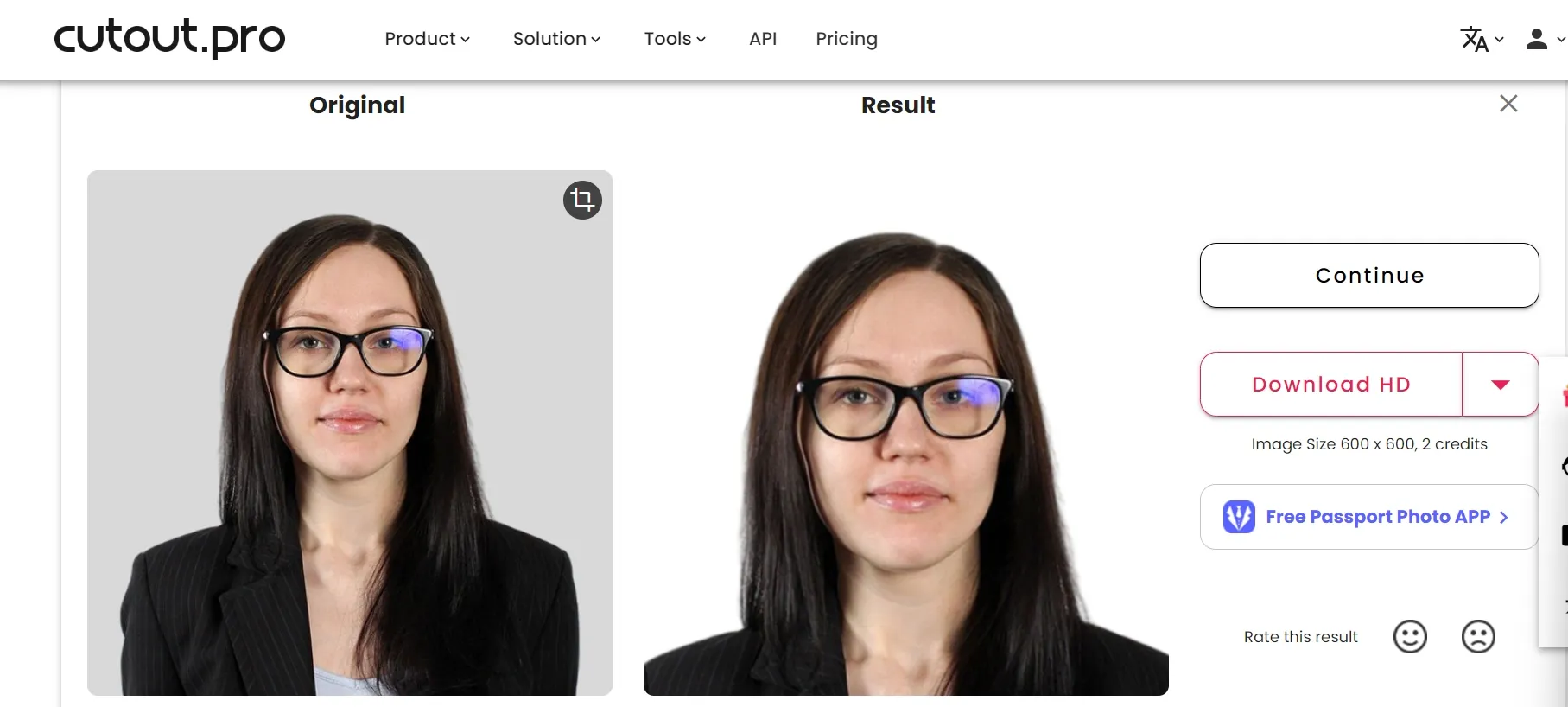 Secara otomatis, aplikasi ini menyediakan layanan yang dapat membuat foto Anda memenuhi kriteria dari foto paspor dalam sekejab. Cutout Pro juga dapat dioperasikan melalui laman website sebagai opsi bagi pengguna yang tidak ingin mengunduh aplikasi tambahan.