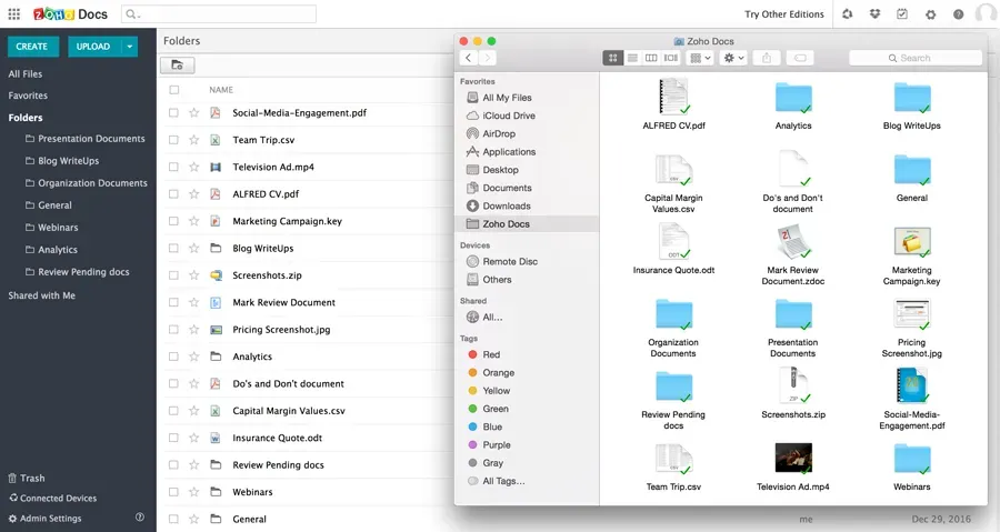 Kalian bisa membuat, menyimpan, mengedit dan sharing dokumen menggunakan aplikasi yang satu ini. Zoho Docs, juga memungkinkan kalian untuk melakukan kolaborasi dengan rekan satu tim. Aplikasi ini berbasis cloud, jadi kalian juga bisa mengunggah musik, video atau file lainnya ke penyimpanan cloud. Versi gratis dari aplikasi ini bisa dipakai sampai dengan 5 pengguna dalam satu tim, dengan media penyimpanan 5GB/pengguna. Zoho Docs versi gratis juga menyediakan aplikasi dokumen, lembar kerja, dan presentasi.