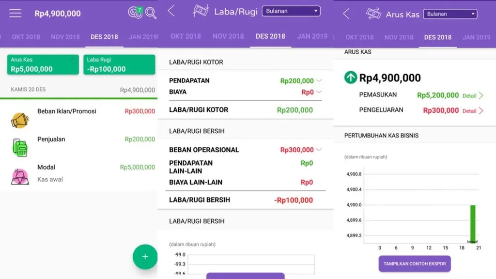 Sedikit berbeda dengan aplikasi lainnya, aplikasi keluaran Badr Interactive ini diperuntukkan untuk keuangan bisnis, terutama kalian yang pertama kali memulai usaha atau bisnis. Kalian bisa mencatat pemasukan dan pengeluaran bisnis dari berbagai sumber dimana masing-masing sumber bisa dikelompokkan ke dalam kategori yang berbeda-beda untuk membantu melacak transaksi. Tidak hanya itu, aplikasi ini secara otomatis menghitung laporan seperti laba/rugi, utang/piutang, dan pertumbuhan kas secara periodik. Kalian juga bisa menemukan konten “kelas mikro” berupa artikel panduan dan informasi singkat mengenai pengelolaan bisnis.