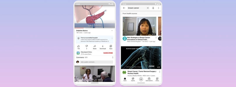 “Kami menambahkan panel informasi sumber kesehatan di video untuk membantu pemirsa mengidentifikasi video dari sumber tepercaya dan rak konten kesehatan yang lebih efektif menyoroti video dari sumber ini saat Anda menelusuri topik kesehatan tertentu. Isyarat konteks ini membantu orang lebih mudah menavigasi dan mengevaluasi informasi kesehatan yang kredibel. Orang-orang akan tetap dapat menemukan video yang relevan dari berbagai saluran di hasil pencarian mereka,” tulis Dr. Garth Graham, MD, Director and Global Head of Healthcare, YouTube.