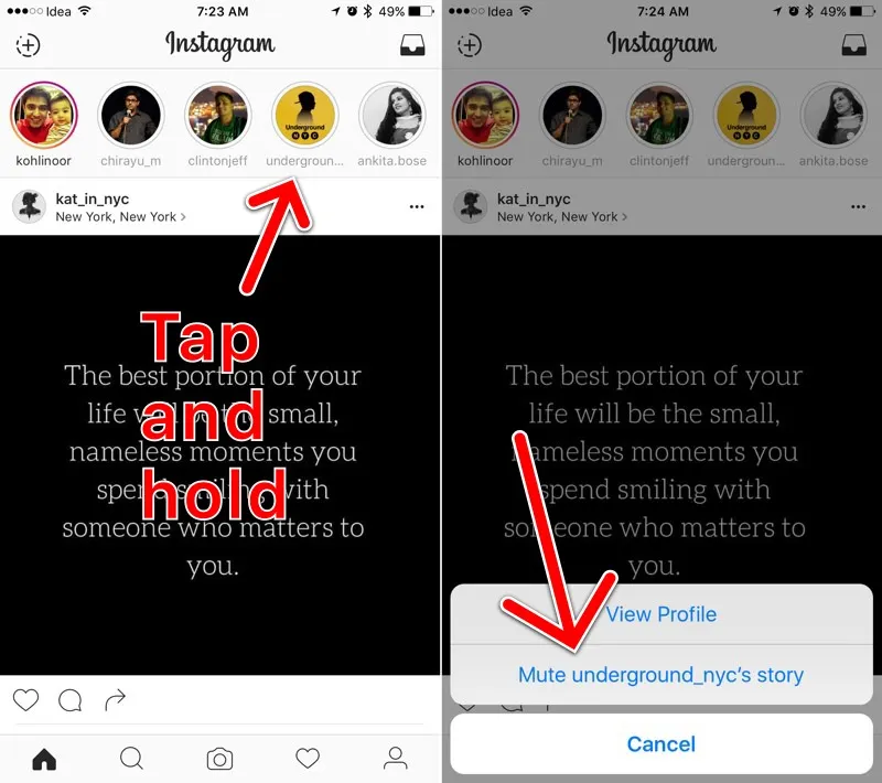 Caranya, cukup tekan dan tahan logo profil orang yang ingin kamu mute di kolom stories, lalu pilih “Mute” dan pilih “Mute Story”. Selain itu, kamu juga bisa nge-mute postingan orang tersebut di beranda kamu dengan memilih “Mute Story and Posts”.