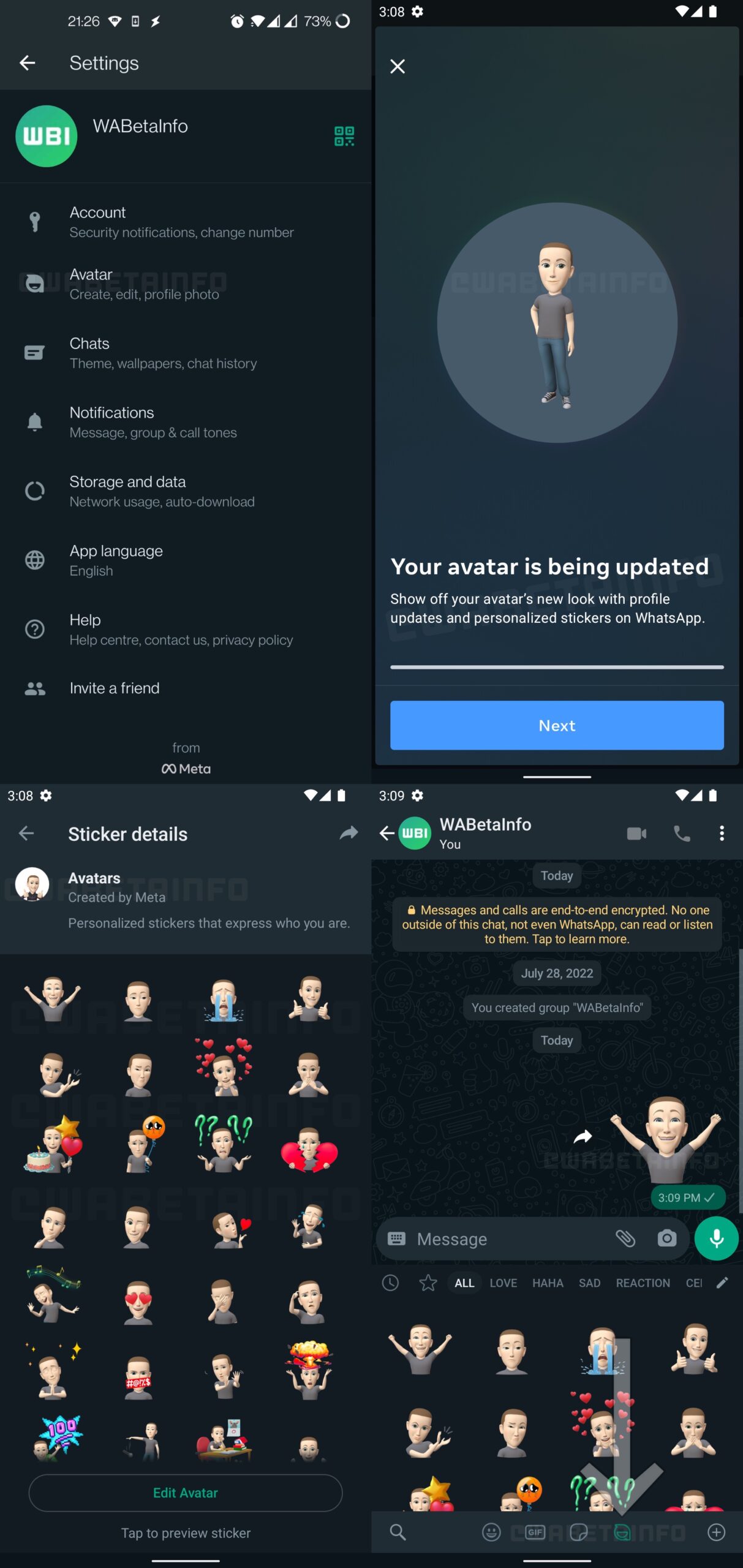 Mekanisme stiker avatar itu akan mirip seperti di aplikasi-aplikasi Meta lainnya. Pengguna bisa membuat paket stiker yang hadir dalam beragam pose dan bisa digunakan untuk mengekspresikan diri ketika mengirim pesan di layanan WhatsApp.