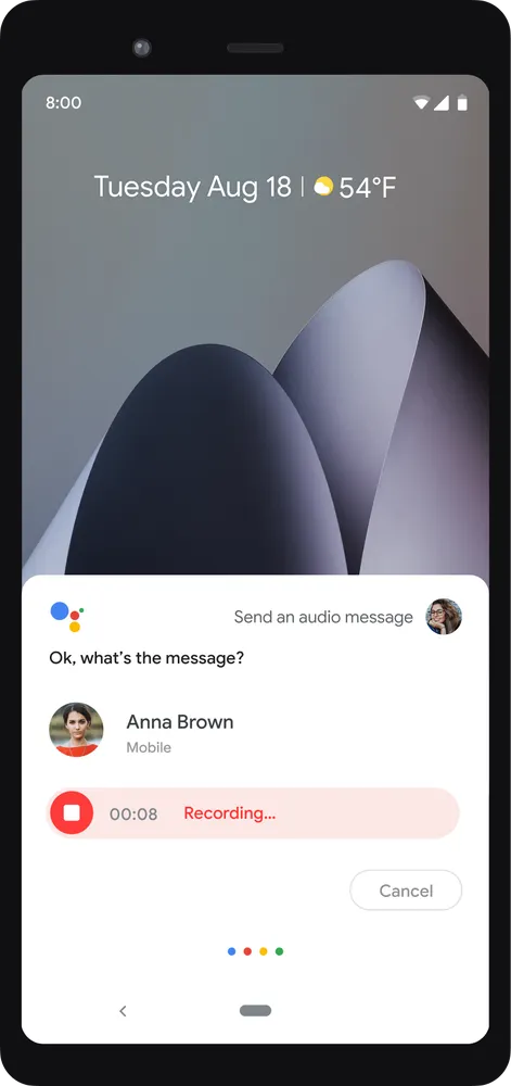 Fitur ini sangat berguna ketika seseorang terlalu lelah untuk mengetik di ponsel atau saat tangan tidak dapat digunakan untuk memegang ponsel karena suatu alasan. Dengan Asisten Google ini, pemilik kemudian dapat menggunakan suaranya untuk mendiktekan pesan. Nantinya, pengguna dapat memerintahkan Google untuk merekam suara mereka dan mengirimkannya pada orang tertentu.