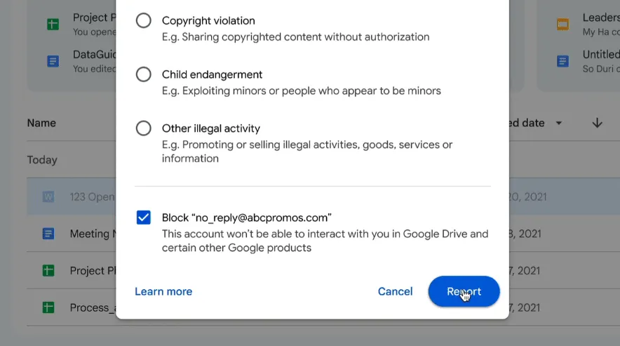 Sayangnya, spam dan upaya jahat menjadi umum di dunia digital saat ini. Faktanya, menurut Google, terus-menerus memblokir spam dari kotak masuk email dengan kecepatan 15 miliar pesan yang tidak diinginkan setiap hari. Untungnya, perlindungan yang sama ini sekarang sedang diperluas ke Google Drive, salah satu target terbaru spammer dan scammer.