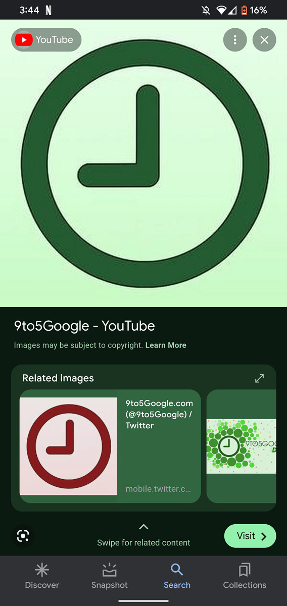 Nama halaman web dan judul artikel jauh lebih besar dalam tata letak yang didesain ulang, namun tetap muncul tepat di bawah pratinjau gambar. Tombol 'Visit', bagaimanapun, telah dipindahkan ke sudut kiri bawah dan, bersama dengan elemen UI lainnya di bawah pratinjau, mengikuti sistem tema dinamis Android 12.