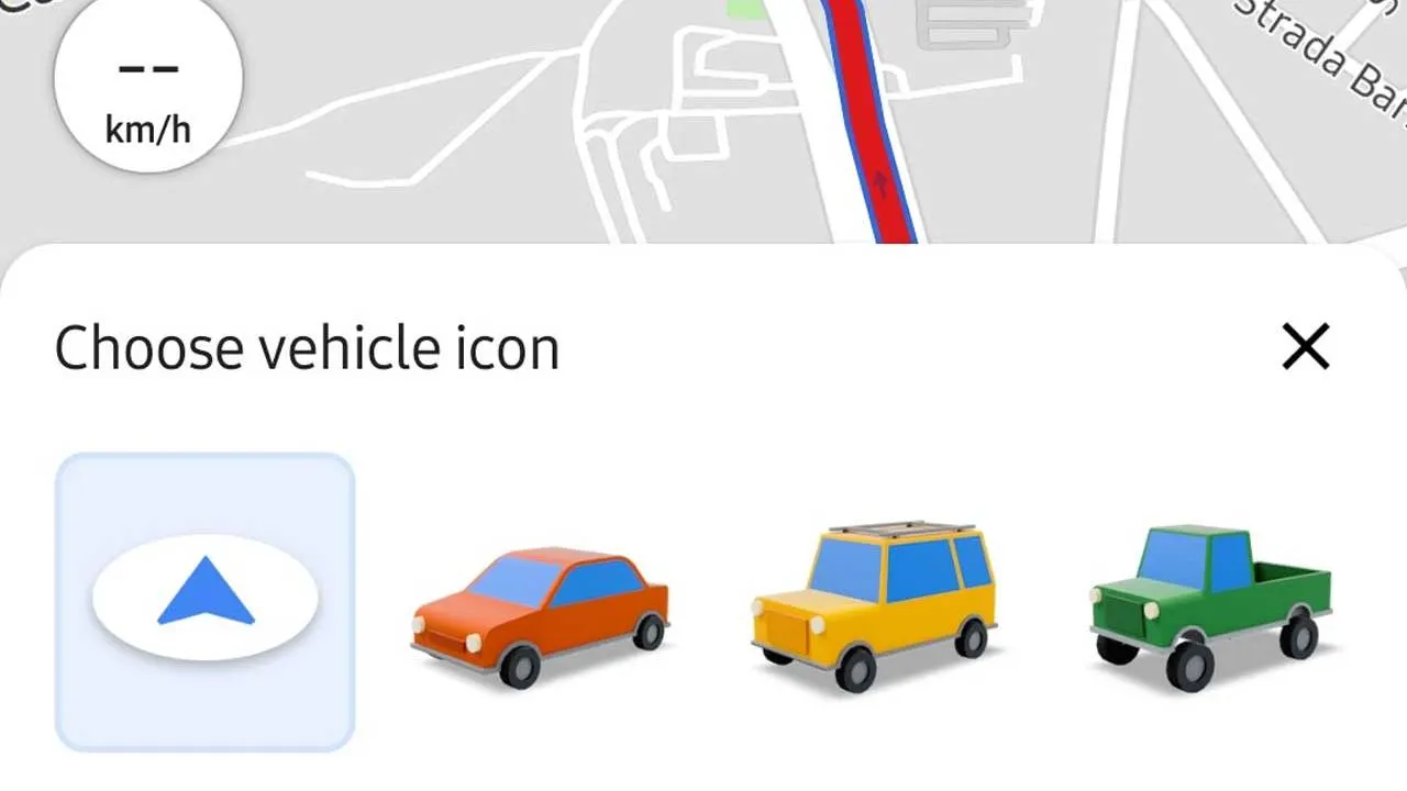 Pada pembaruan Google Maps versi 10.52.2 pada Android, pengguna kini bisa melakukan pengaturan ikon yang mulanya bergambar panah biasa menjadi mobil merah, SUV kuning, sampai truck pick-up berwarna hijau.