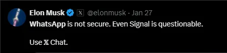 Kontroversi ini tidak berhenti di ruang sidang. Sejumlah tokoh teknologi ternama ikut angkat bicara, termasuk CEO Telegram Pavel Durov dan pemilik platform X, Elon Musk. Melalui unggahan di X, Musk menyebut WhatsApp tidak aman, sembari mengenalkan fitur X Chat sebagai alternatif.