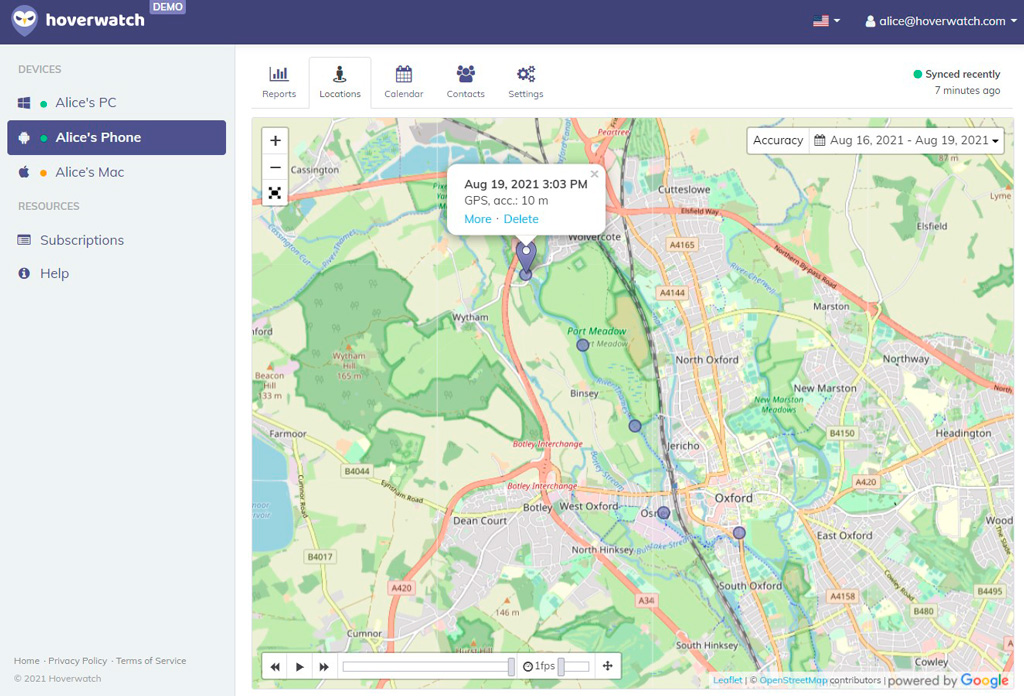 Hoverwatch juga mengumpulkan data dari menara seluler terdekat guna pelacakan cepat jika ponsel anak tidak memiliki akses ke GPS pada saat itu.