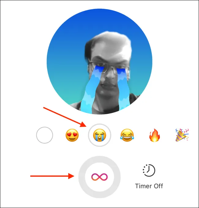 Cobakan emoji overlay dengan memilih satu emoji. Ketika sudah siap, klik tombol ‘Shutter’ untuk merekam emoji tersebut (kamu juga bisa mengatur timer, lho).